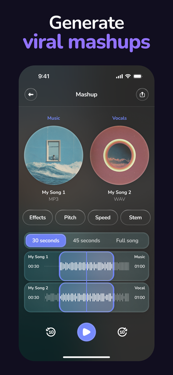 AI DJ - Mashup Maker & Remix App is een veelzijdige multimedia-app voor iPhone die gebruikers in staat stelt om eenvoudig hun eigen mashups en remixes te creëren. Met functies zoals automatische BPM- en toonsoortmatching, kunnen gebruikers snel twee nummers selecteren en deze laten mixen door de AI. De app biedt ook hulpmiddelen voor het aanpassen van vocalen, drums, bas en instrumenten, en maakt het mogelijk om audio-effecten zoals reverb, delay en lo-fi toe te voegen.
